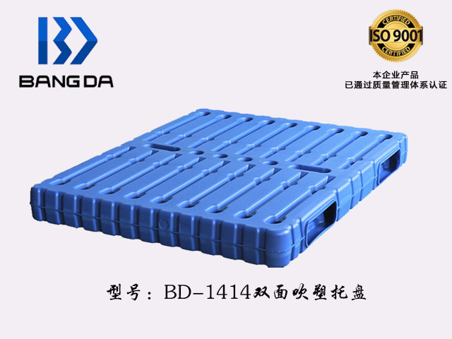 BD-1414雙面塑料托盤尺寸為1400*1400*150(mm)采用國內最先進的吹塑技術,原材料采用的是HDPE一種結晶度高,非極性的熱塑性樹脂;邦達的雙面塑料托盤承載強,耐高溫且環保;山東邦達包裝有