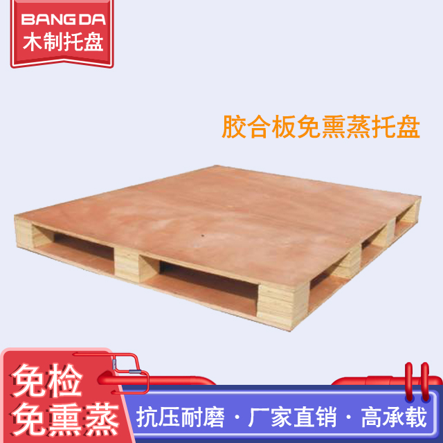 膠合板托盤的最大特點:出口免熏蒸、無蟲蛀、免熏蒸、免消毒,不受時間限制。可直接出口歐美及世界各國。該產品符合世界各國的入境和環保要求,是出口產品的好幫手。(膠合板屬于人造