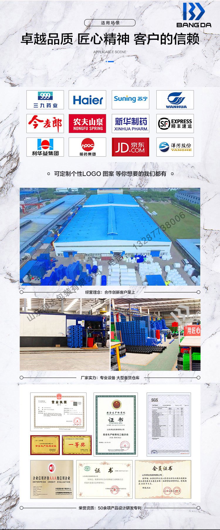 七腳塑料托盤(pán)屬于輕型的塑料托盤(pán),適用于倉(cāng)板防潮使用,輕型貨物的周轉(zhuǎn);山東邦達(dá)包裝有限公司七腳塑料托盤(pán)根據(jù)輕巧的設(shè)計(jì)實(shí)現(xiàn)了超輕化及一體化的托盤(pán)生產(chǎn)。在抗沖擊力與耐用性方面,邦達(dá)塑料托盤(pán)有著同行業(yè)無(wú)可比擬的優(yōu)越性。邦達(dá)七腳托盤(pán)經(jīng)過(guò)把受熱融化的材料(HDPE)由高壓射入模腔,經(jīng)冷卻固化后,得到成形品,具有卓越的耐水性、耐繡性及耐久性可以長(zhǎng)時(shí)間使用,經(jīng)濟(jì)實(shí)惠。