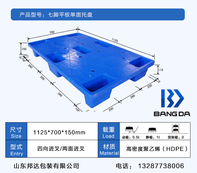 山東邦達(dá)包裝有限公司七腳塑料托盤(pán)型號(hào):